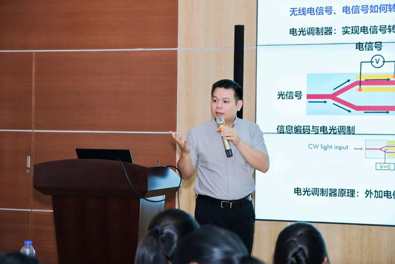 接下来,卢惠辉向同学们系统介绍了六合彩心水论坛 (六合彩心水论坛 )的发展历程、专业特色与科研实力,并作题为“从简单光学现象到光电信息科学与工程”的科普讲座,引领学生认识光电信息科学与工程专业和学科的前沿知识和应用。同时,他结合院系在教学和科研方面的突出成果,鼓励同学们勇于探索、敢于创新,未来积极报考暨南大学。培正中学代表为卢惠辉赠送培正中学创意纪念品。
